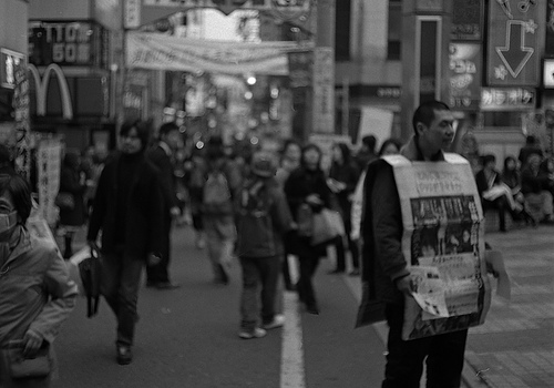 私は勝手にそのサンドイッチマンのおじさんに背景を感じた。